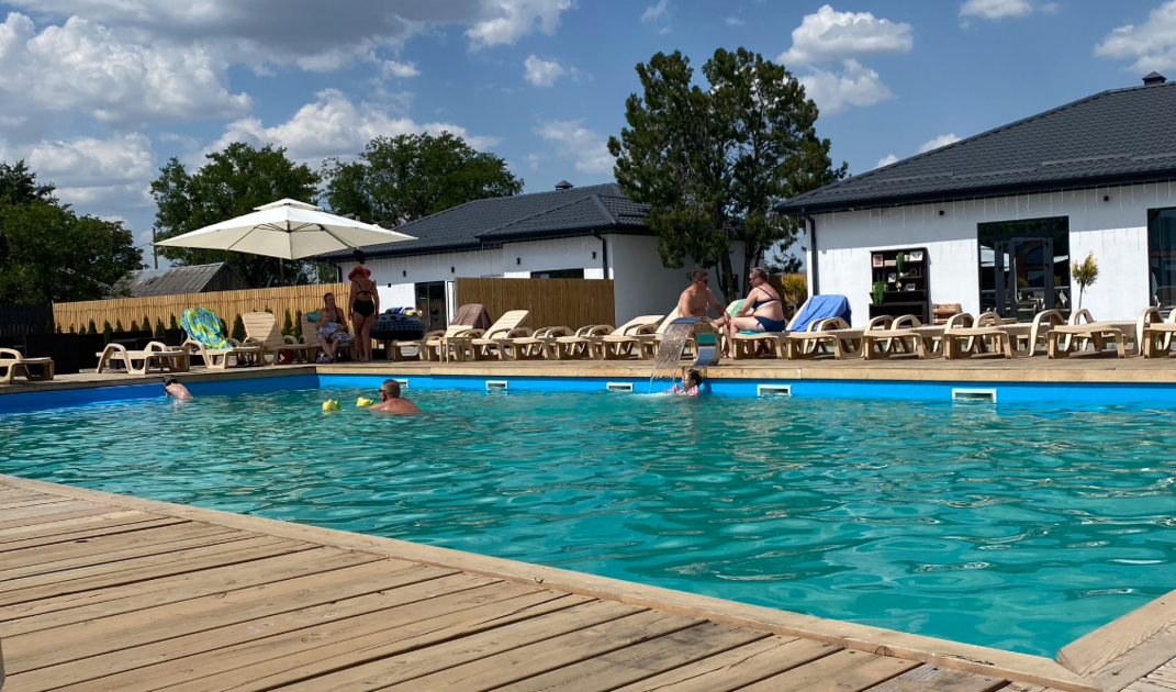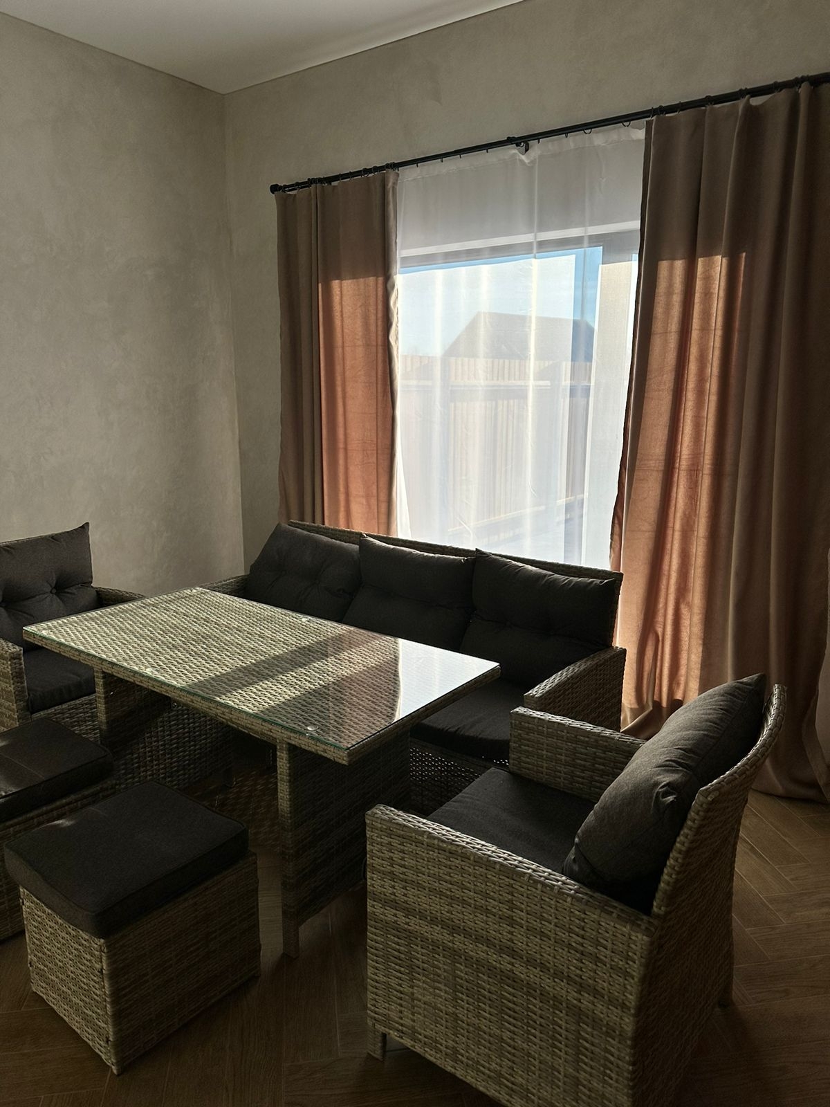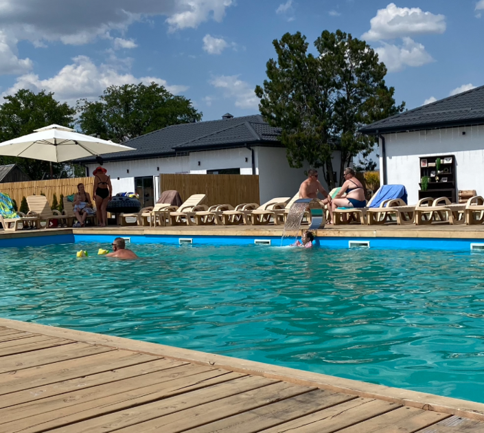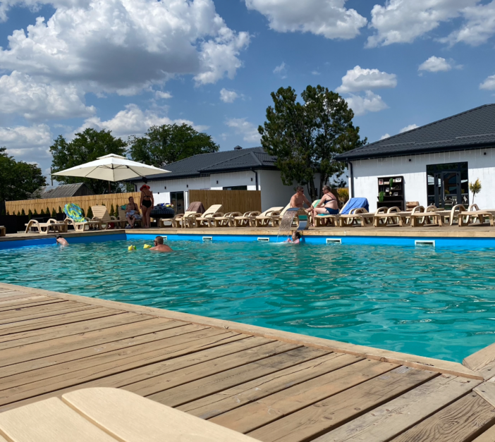Голубой домик — светлый и просторный, рассчитан также на 6 гостей. Всё необходимое для комфортного отдыха: кухня, спальные места, гостиная зона, санузел. Уютная терраса для вечеров на свежем воздухе.