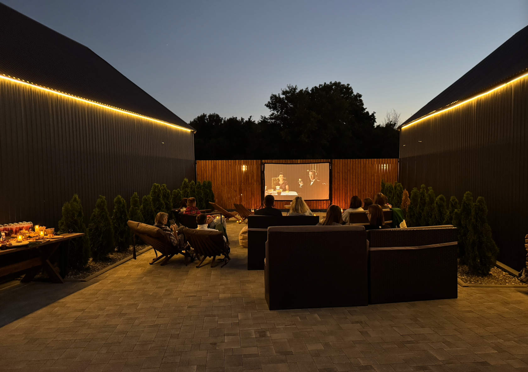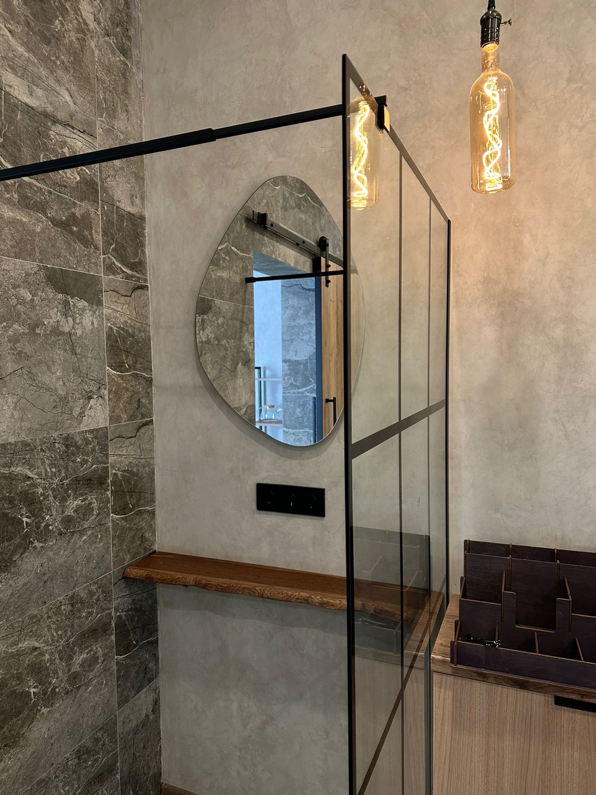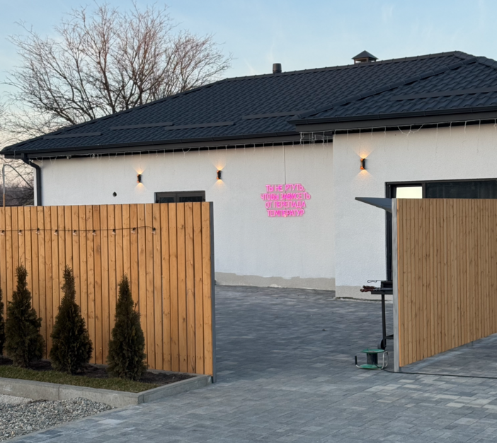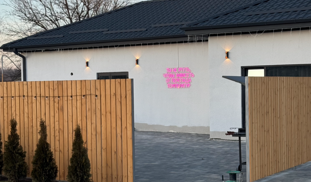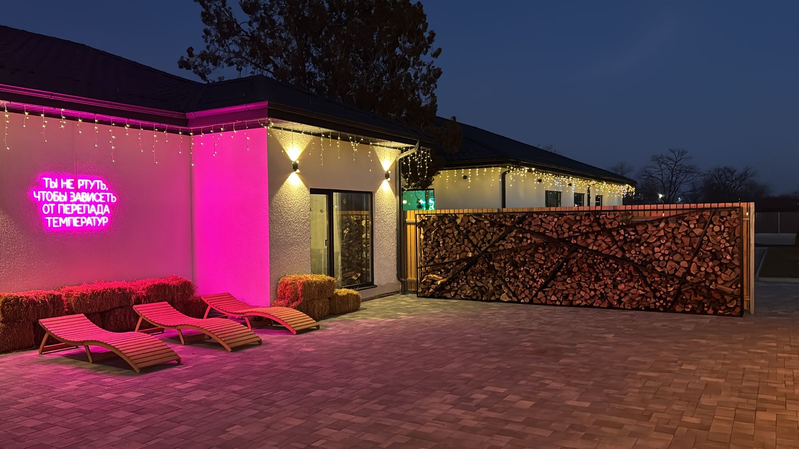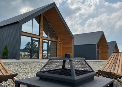 Двухэтажный Барн с панорамными окнами. Вмещает до 8 гостей. Внутри: кухня, гостиная, санузел, спальные зоны, кондиционер, Wi-Fi. На улице — своя мангальная зона.